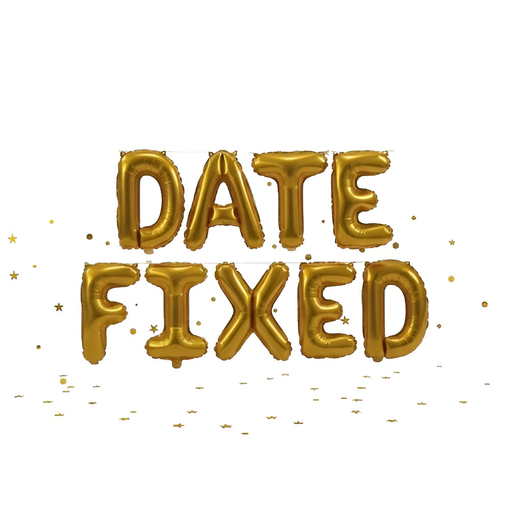 This Gold “DATE FIXED” Balloon Banner is perfect for engagement announcements, roka decor, and pre-wedding celebrations. The bright gold letters create a beautiful backdrop for photos and instantly elevate the setup. Easy to inflate and hang, ideal for home or event décor.